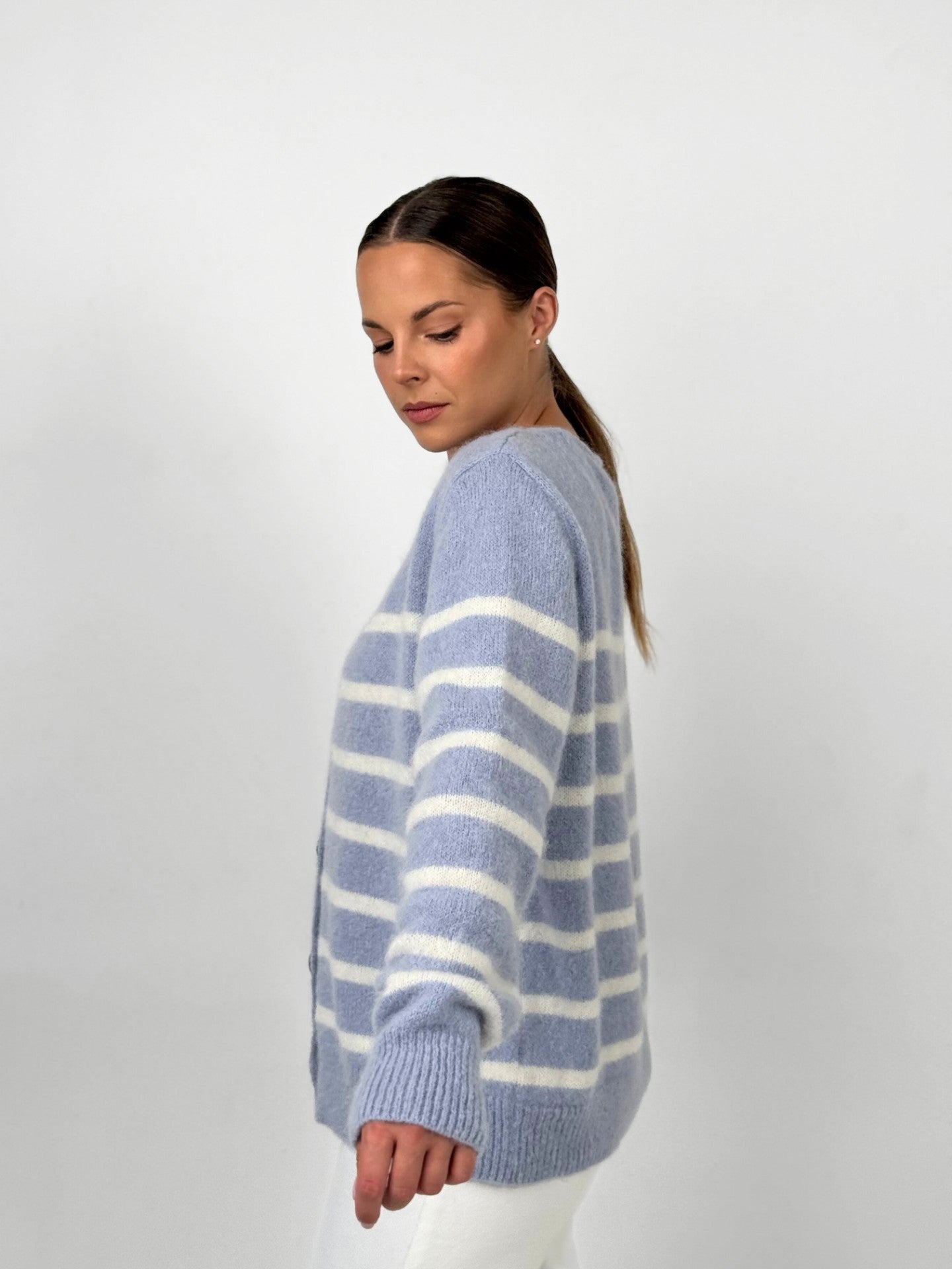 ADELE melsvas dryžuotas megztinis