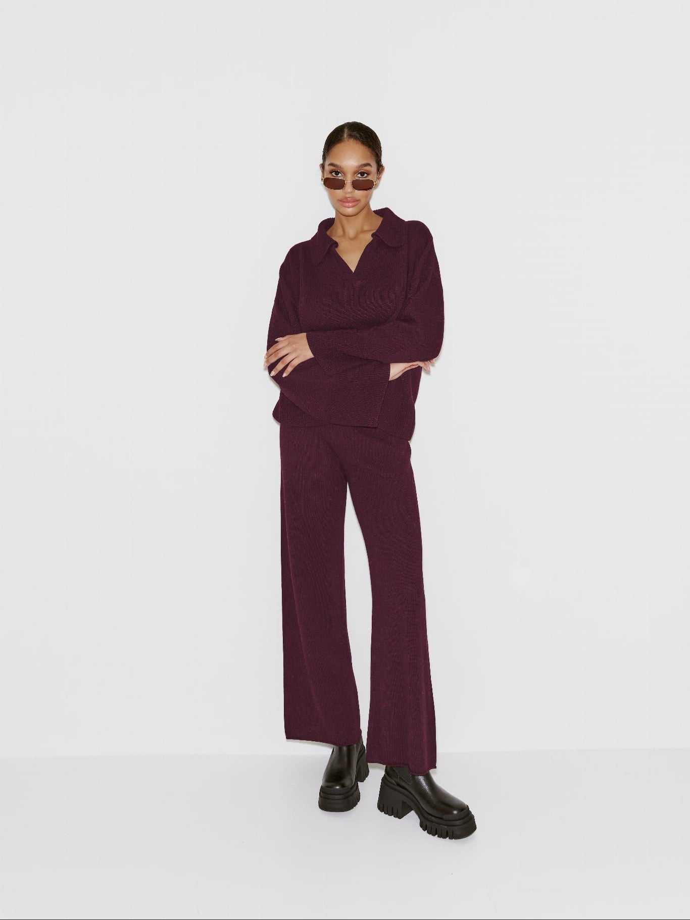 Megztas CELINE laisvalaikio kostiumas - tobulas komforto ir stiliaus derinys. Viršutinė dalis pasižymi elegantiška atlenkta apykakle. Minkštas ir malonus kūnui audinys suteikia nepriekaištingą komfortą tiek kasdieniame nešiojime, tiek laisvalaikio pramogose. Švelnios linijos ir dailios proporcijos leidžia kostiumą nešioti ne tik kartu, bet ir derinant su įvairiomis kelnių arba sijonų kombinacijomis. Tai paverčia šį kostiumą dar universalesniu ir leidžia jums sukurti ne vieną naują įvaizdį.