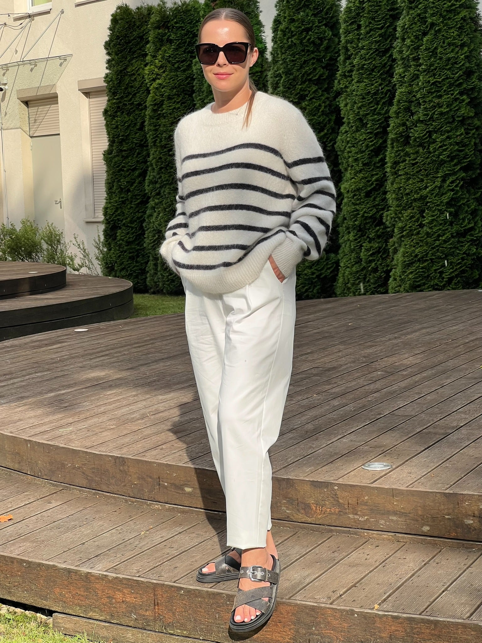 Laikui nepavaldi klasika su pūkeliu, pagaminta iš 58% Suri Alpacos ir 15% vilnos. Universalaus dydžio, tiesaus ir lygaus kirpimo, lengvai priderinamas prie įvairių aprangos derinių. Puikiai papildys jūsų garderobą, suteikdamas elegancijos ir komforto jausmą tiek kasdienėje aprangoje, tiek ypatingomis progomis. Pasirinkimas tiems, kurie vertina kokybę ir laikui nepavaldžius modelius.