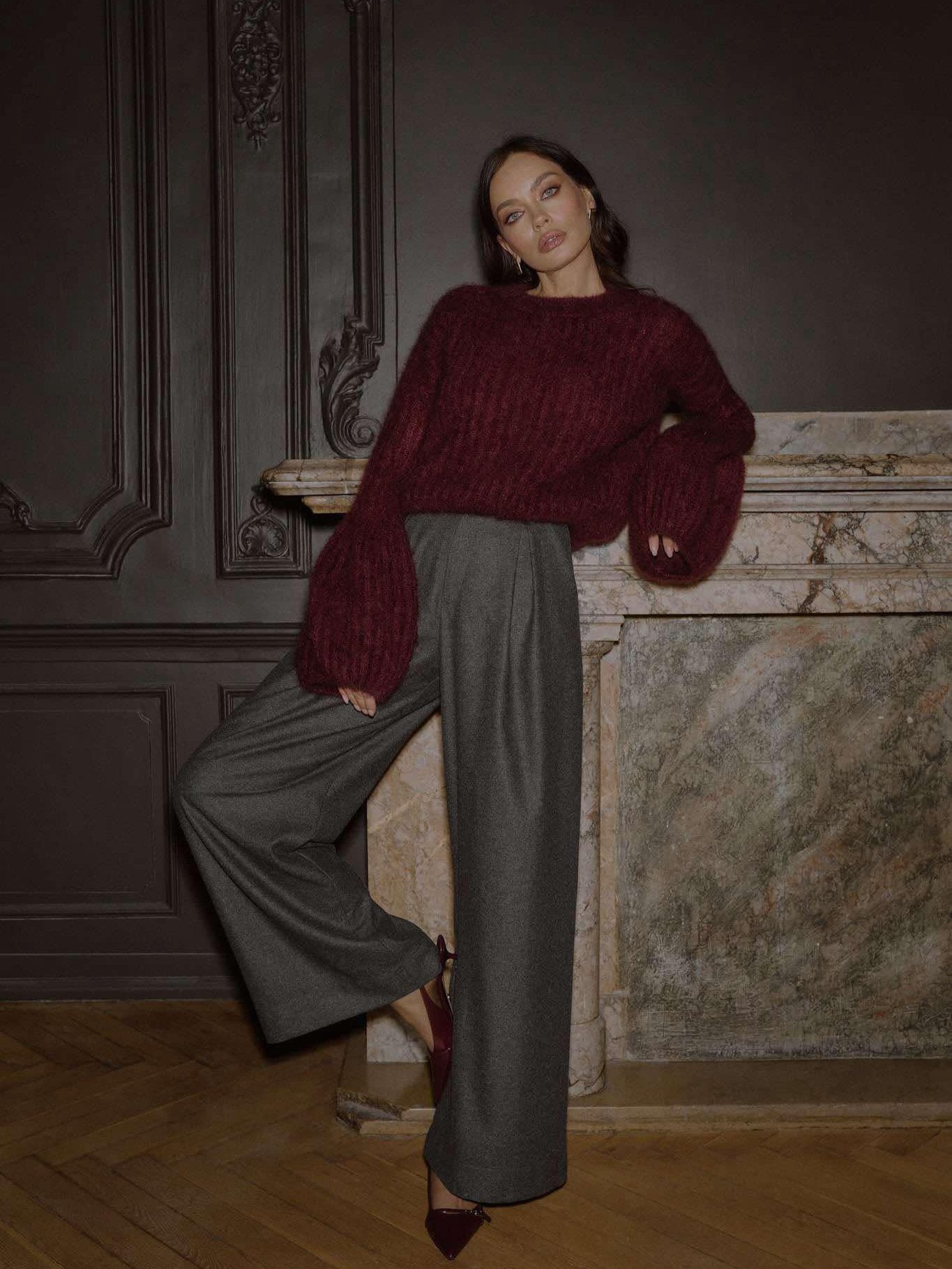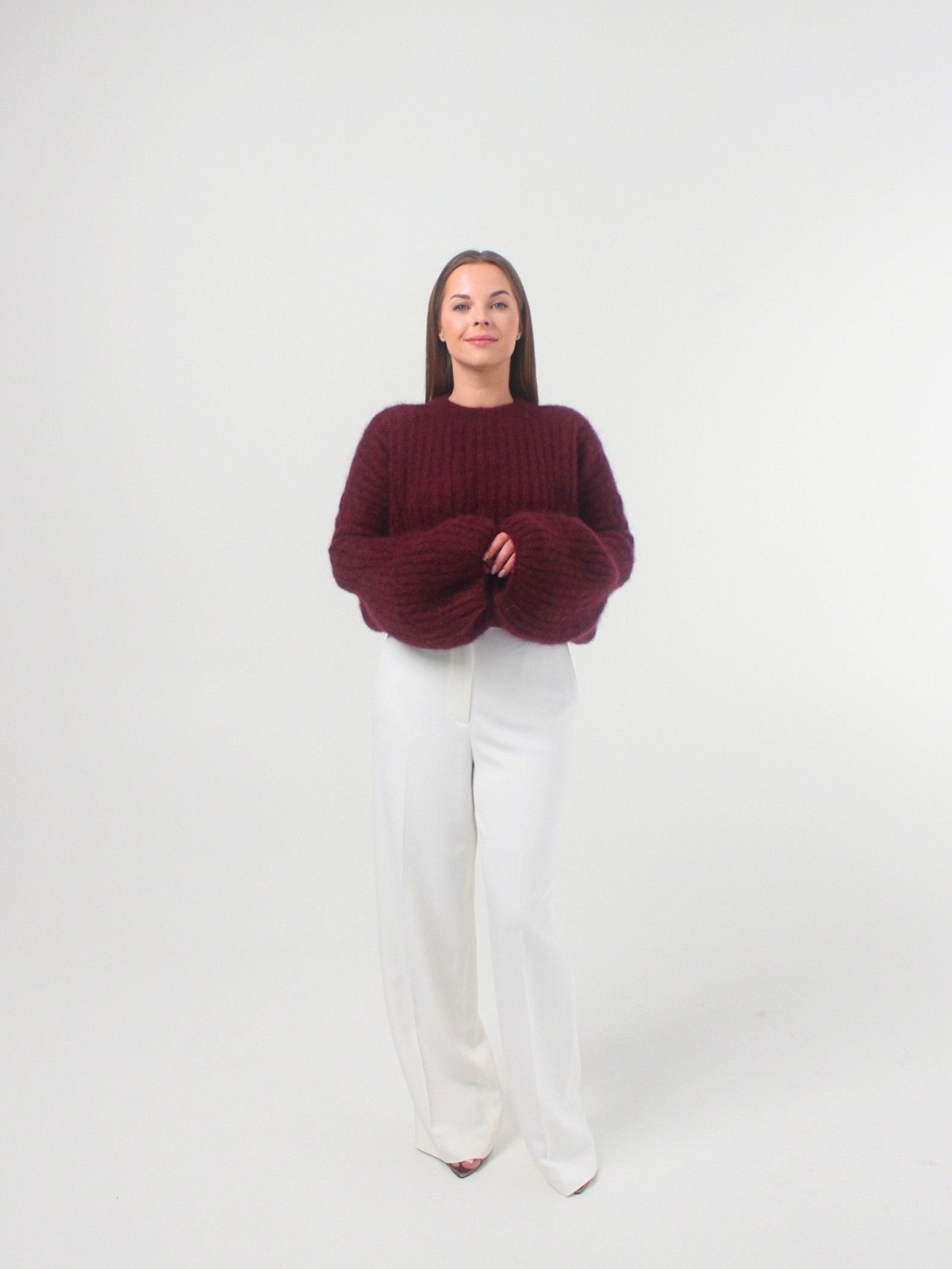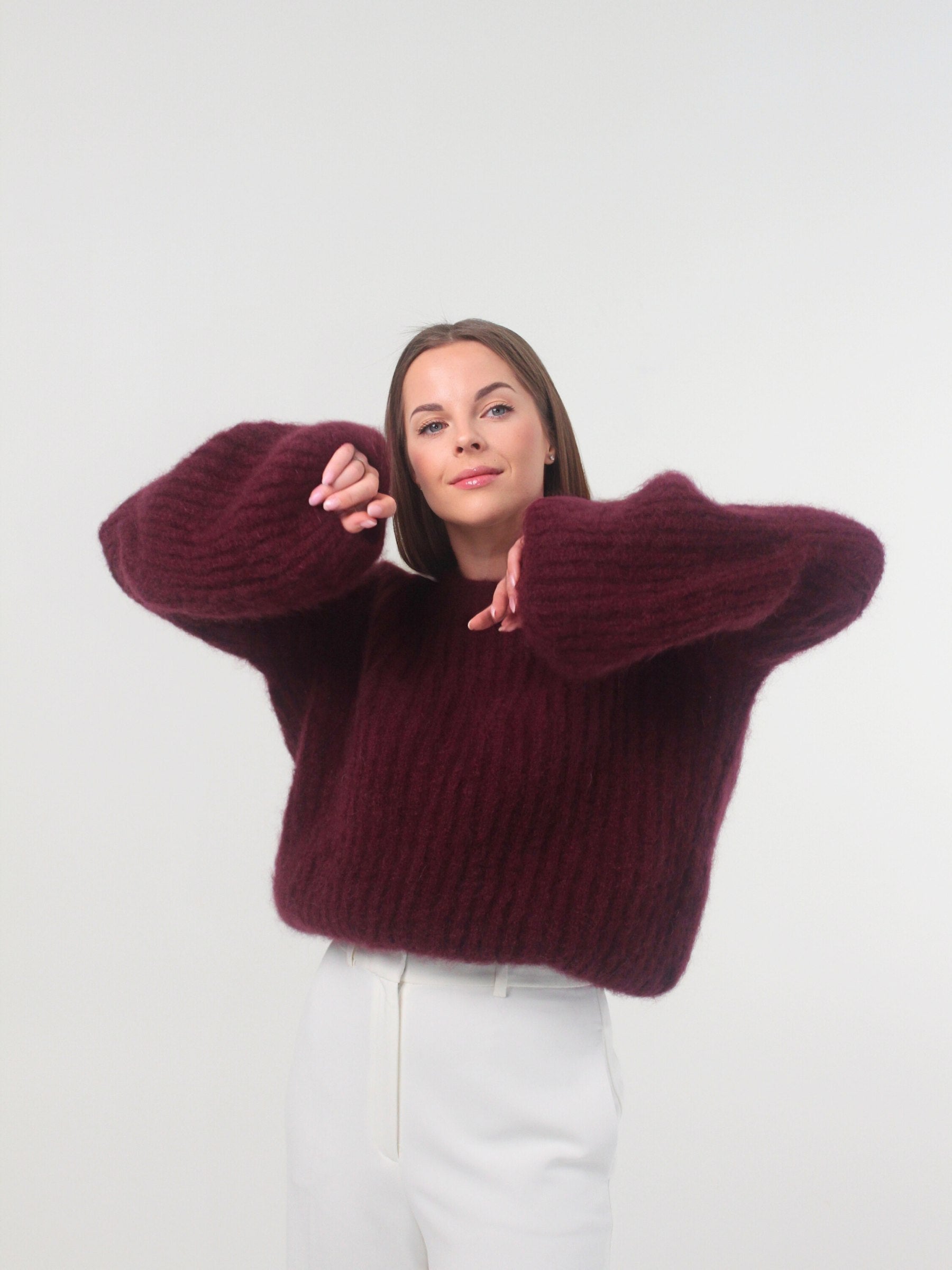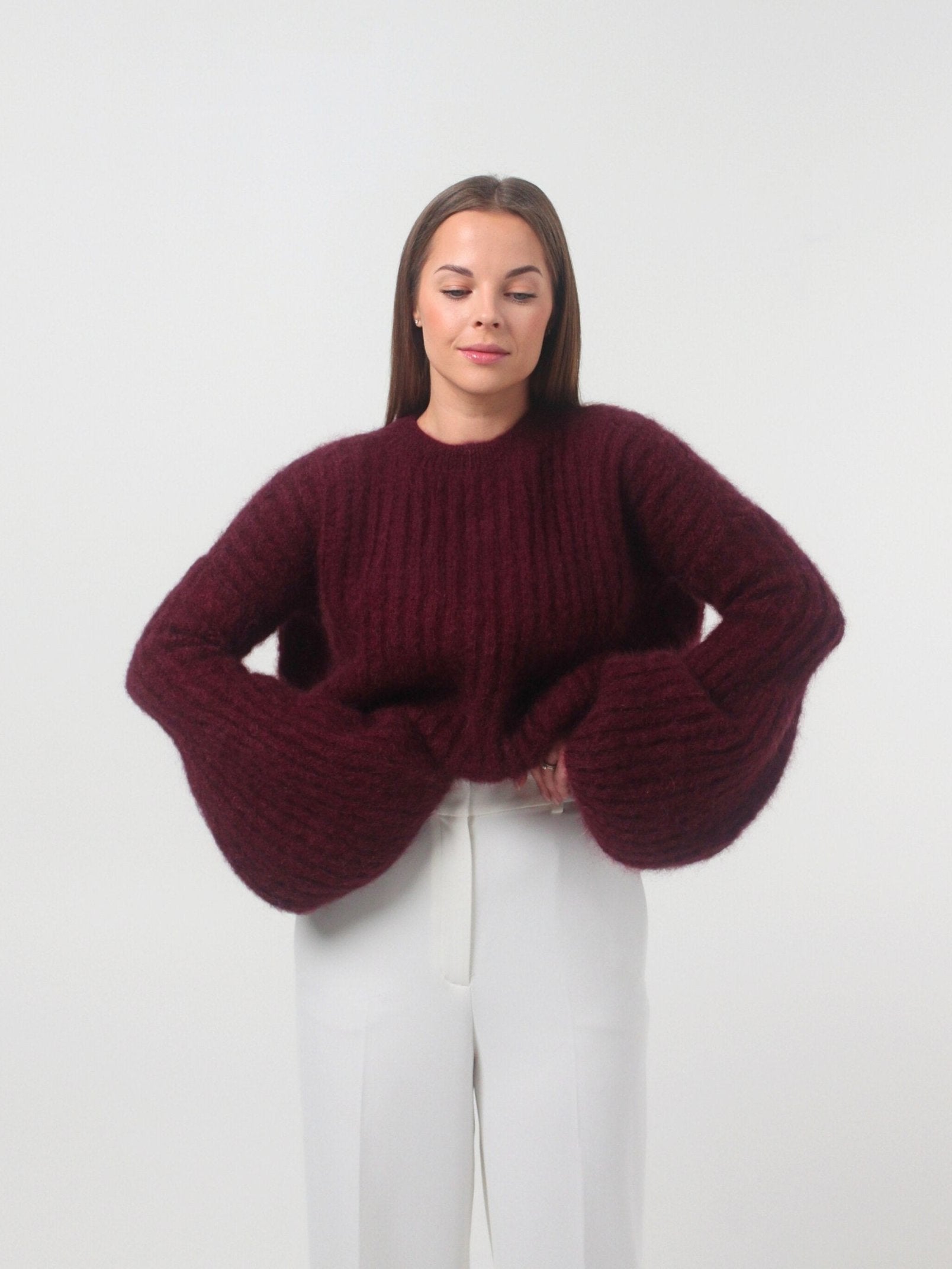 Modelis, kuris suteikia žavesio bei elegancijos kiekvienam drabužių deriniui. Trumpo ir laisvo kirpimo, platėjančiomis rankovėmis. Ieškančioms originalumo ir subtilumo savo spintoje, bei mėgstančioms individualų skonį ir stilių. Megztinis pagamintas iš prabangių, itin subtilių ir malonių liesti, superkid moheros siūlų.