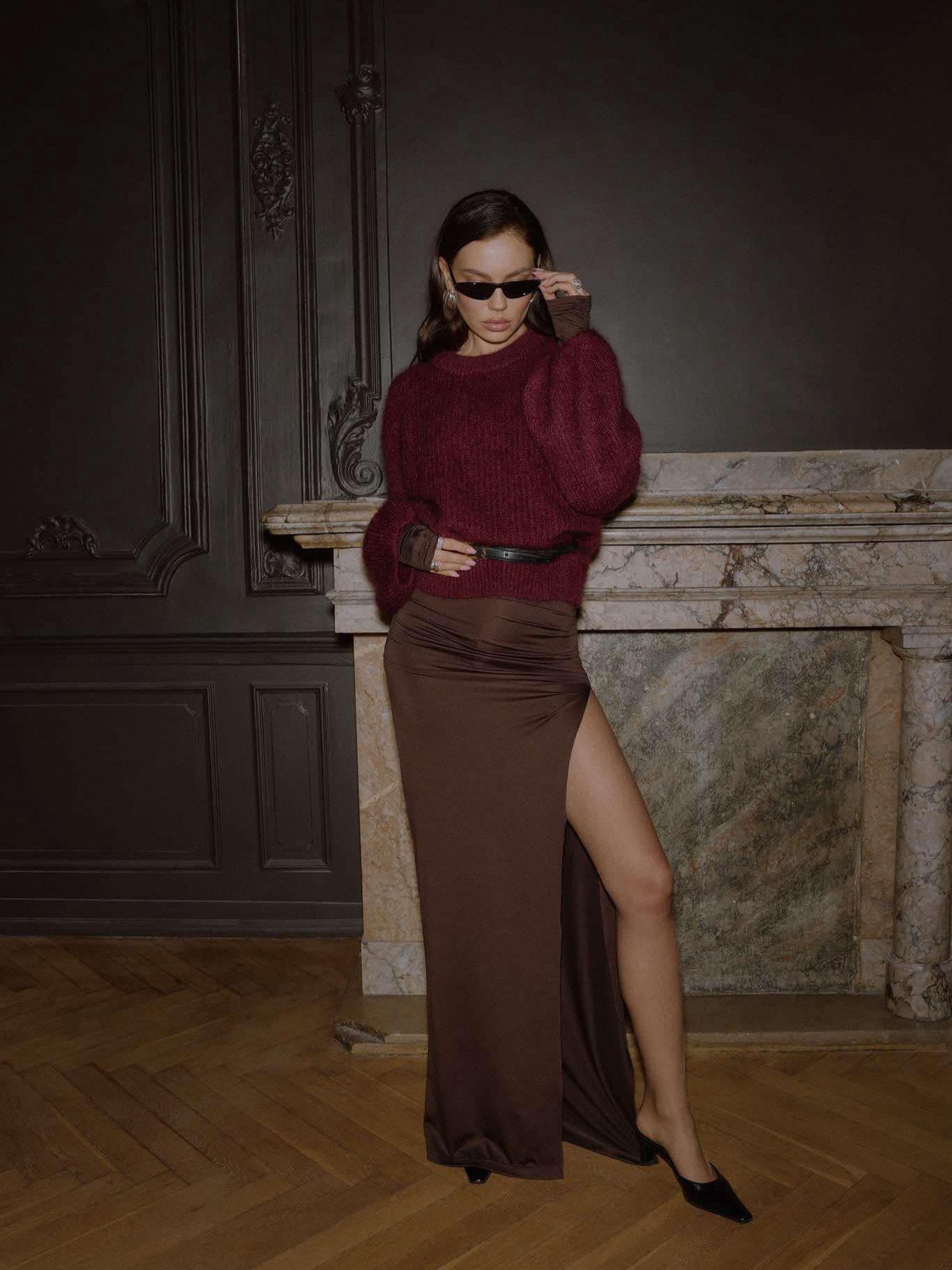 Tai ilgesnė ir dar elegantiškesnė mūsų mylimo EMILY megztinio versija. Abu modelius vienija platėjančios rankovės, tapusios tikru mūsų bestseleriu. Tačiau HESTIA išsiskiria subtiliai ilgesniu siluetu (EMILY - 48cm, HESTIA - 56cm) bei dar švelnesniu, prabangesniu mezgimu. Pagaminta iš aukščiausios kokybės superkid moheros, ji ne tik apgaubia šiluma, bet ir spinduliuoja lengvumu bei elegancija.