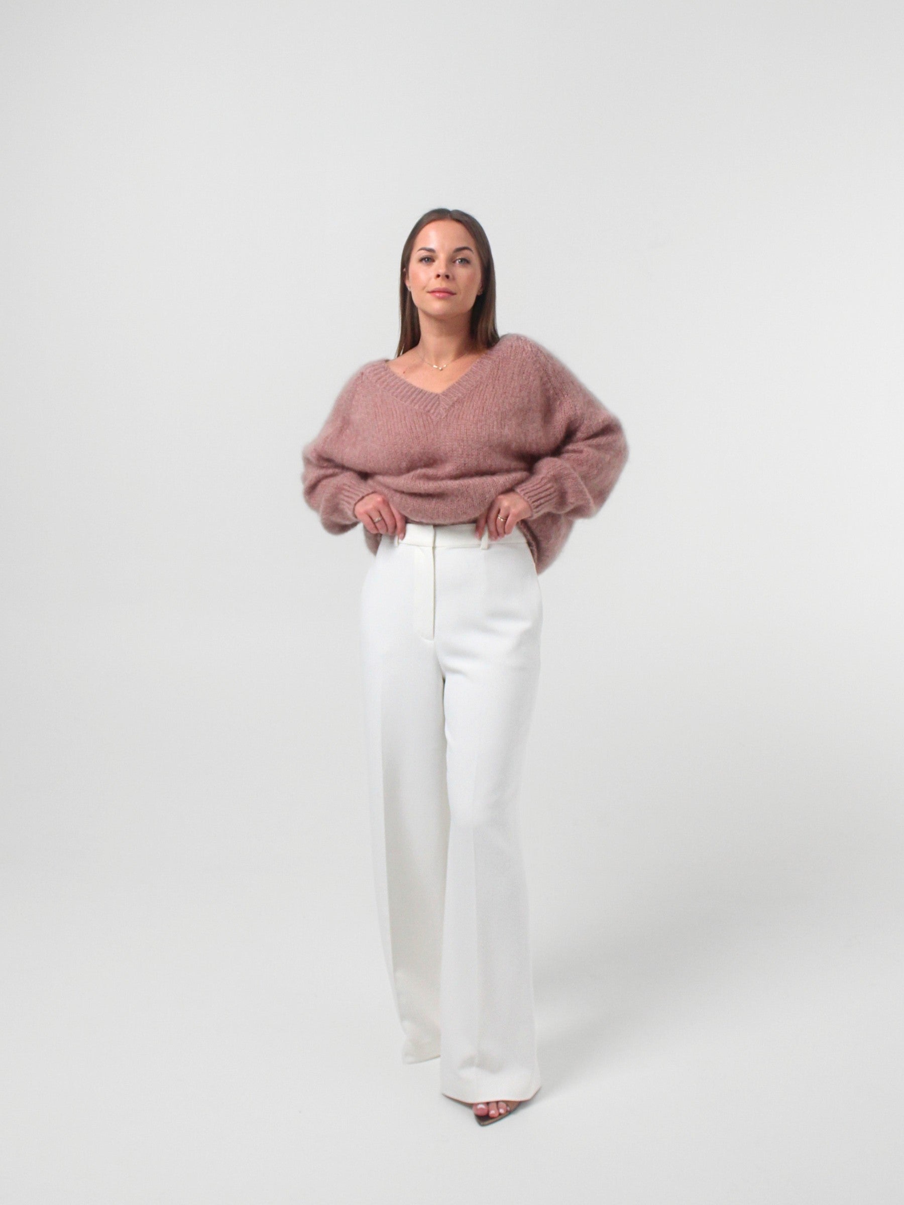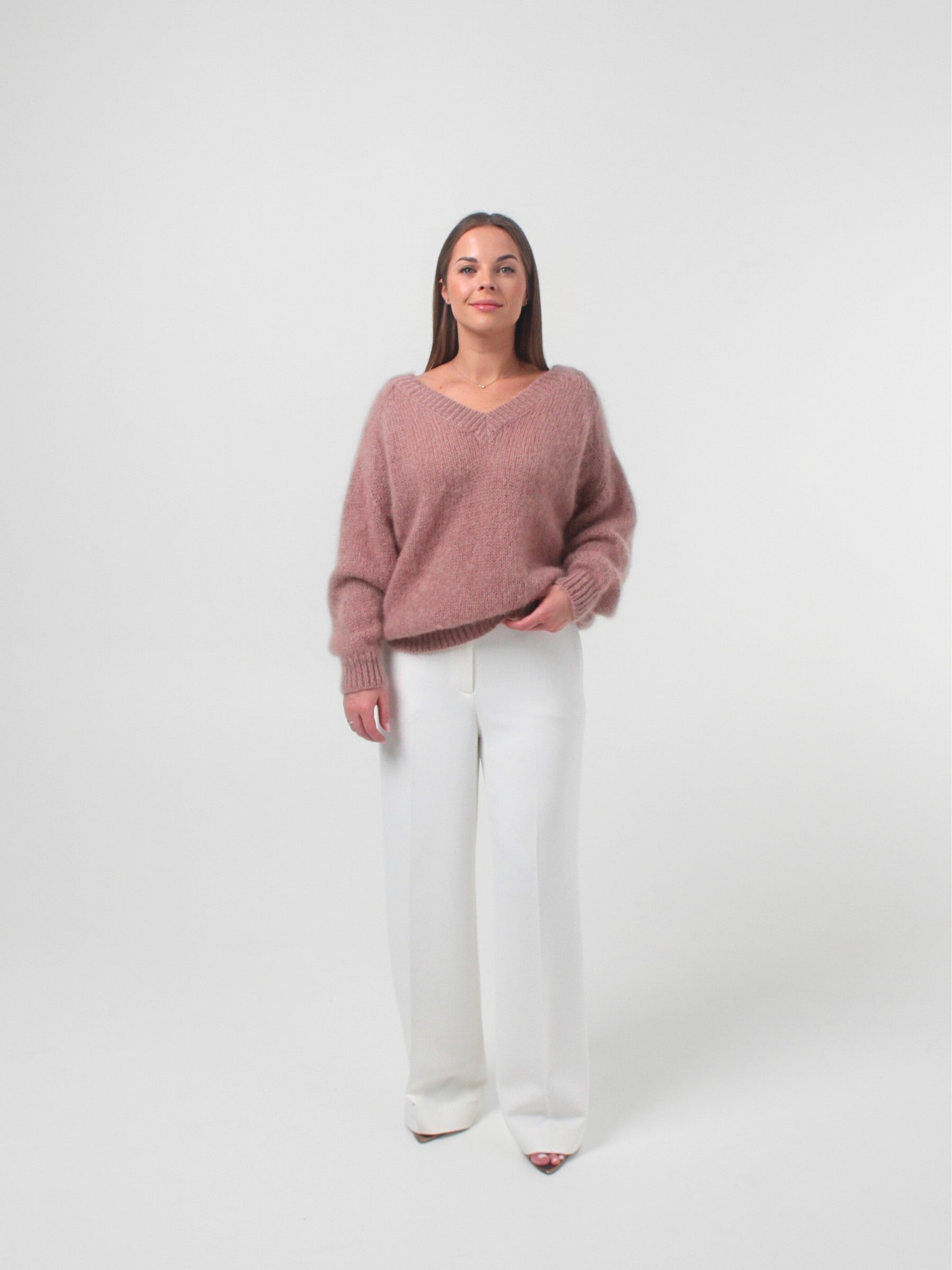 Stilingas ir nepabostantis megztinis su plačia spalvų palete. Itin minkštas ir ypač švelnus prisilietimui, pagamintas iš aukščiausios kokybės itališkų siūlų. Klasikinio kirpimo modelis, su subtilia trikampe iškirpte priekyje ir nugaroje. Puikiai dera prie įvairių aprangos stilių ir tinka tiek kasdienai, tiek ypatingoms progoms.
