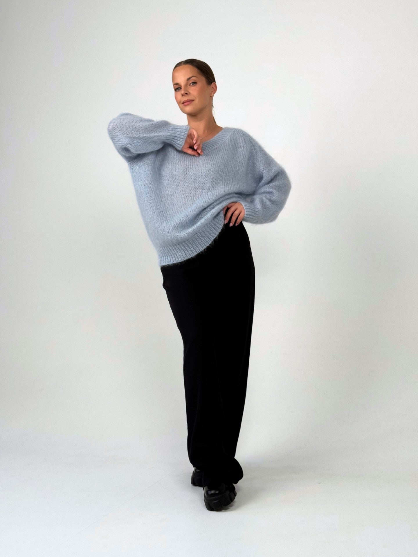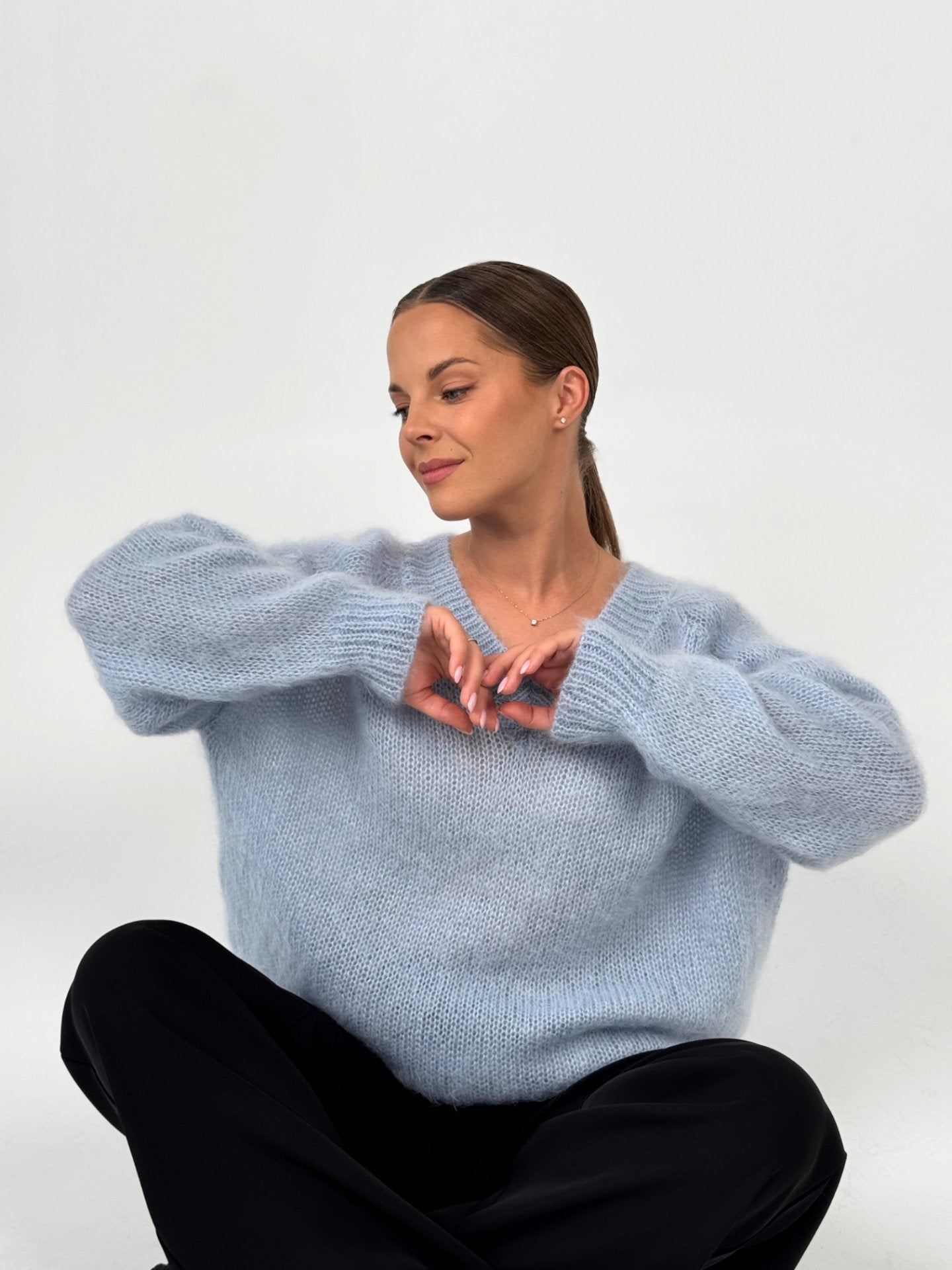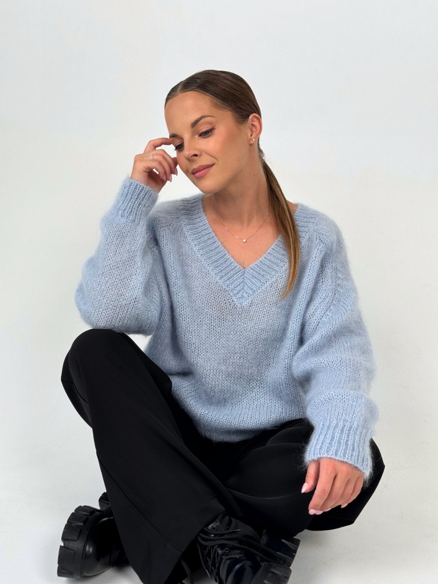 Stilingas ir nepabostantis megztinis su plačia spalvų palete. Itin minkštas ir ypač švelnus prisilietimui, pagamintas iš aukščiausios kokybės itališkų siūlų. Klasikinio kirpimo modelis, su subtilia trikampe iškirpte priekyje ir nugaroje. Puikiai dera prie įvairių aprangos stilių ir tinka tiek kasdienai, tiek ypatingoms progoms.
