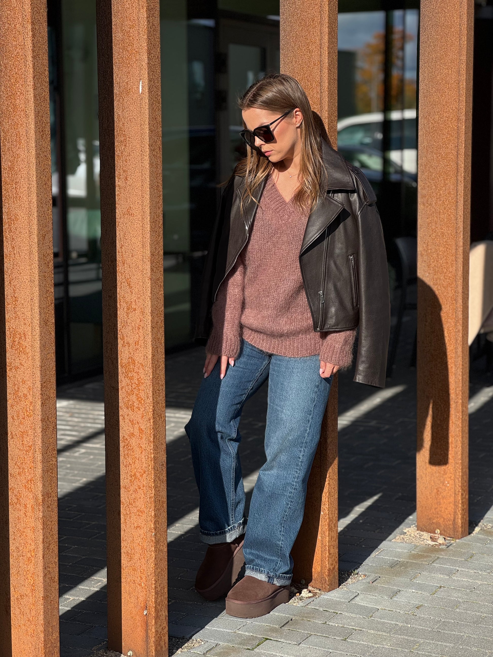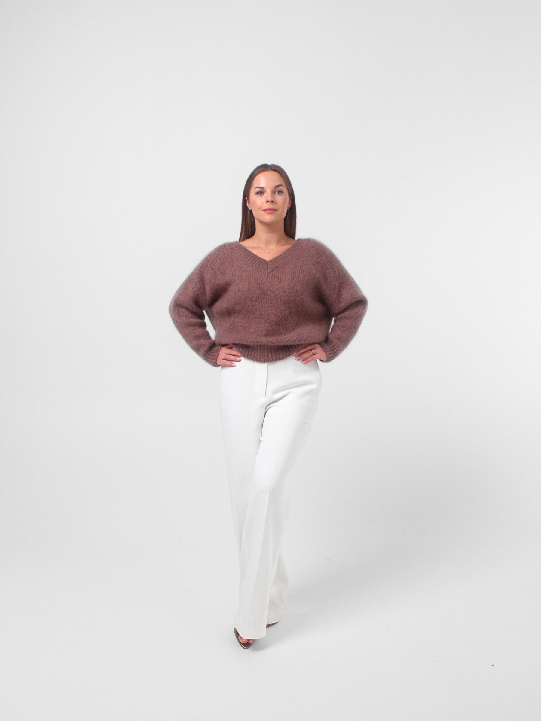 Stilingas ir nepabostantis megztinis su plačia spalvų palete. Itin minkštas ir ypač švelnus prisilietimui, pagamintas iš aukščiausios kokybės itališkų siūlų. Klasikinio kirpimo modelis, su subtilia trikampe iškirpte priekyje ir nugaroje. Puikiai dera prie įvairių aprangos stilių ir tinka tiek kasdienai, tiek ypatingoms progoms.