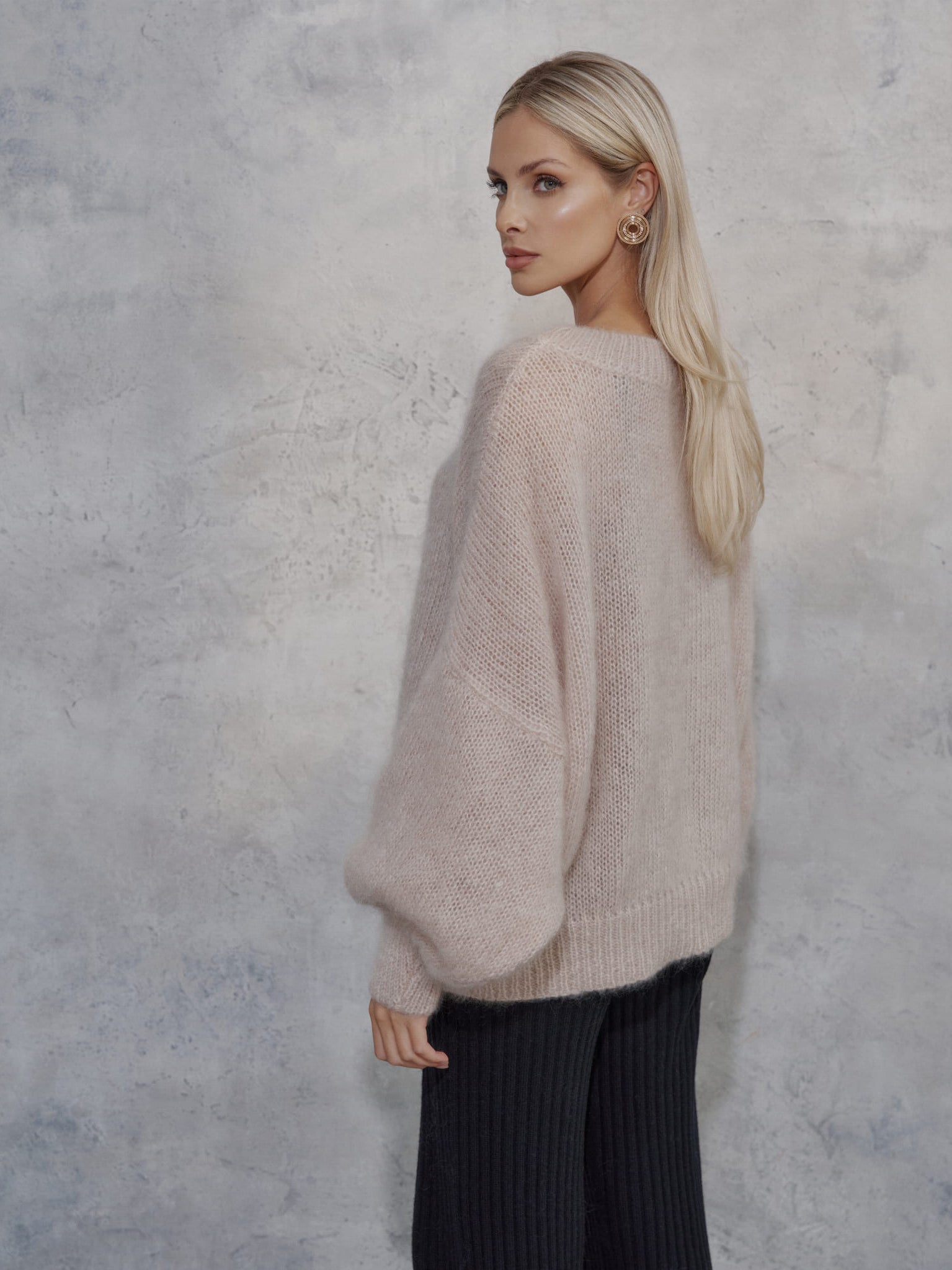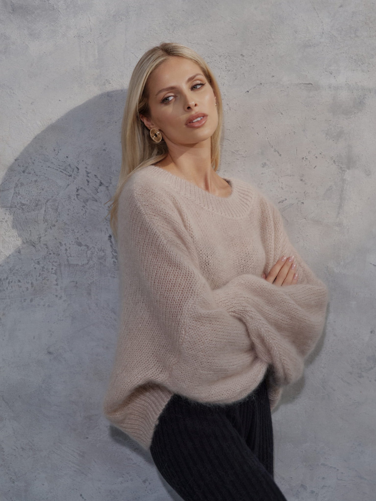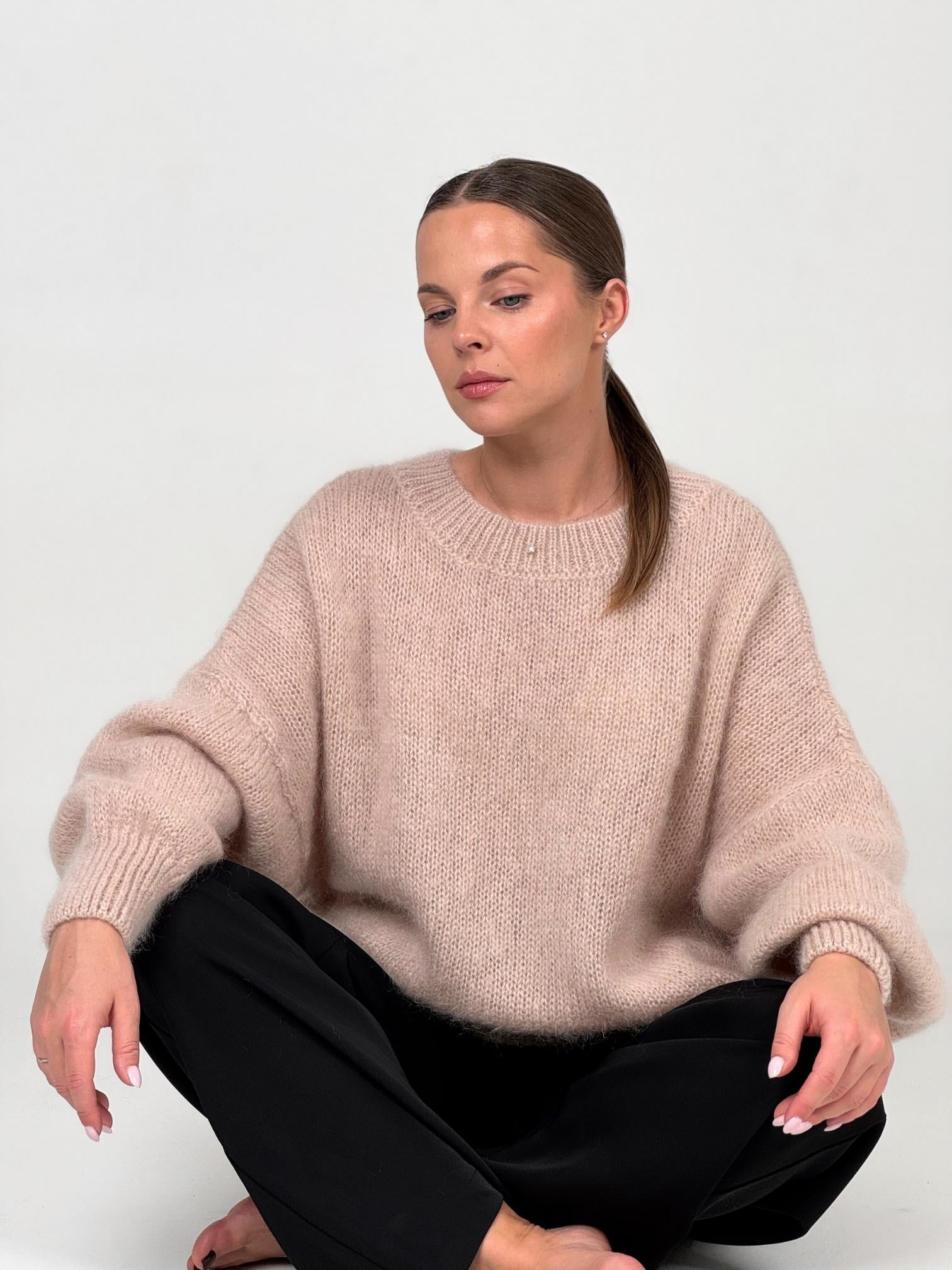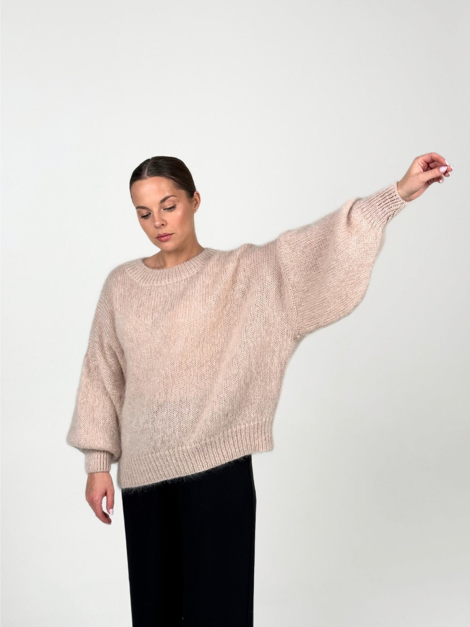Pūkuotas, itin minkštas ir malonus liesti, mėgstančioms išskirtinumą, oversize stilių ir nevaržomą judėjimo laisvę. Modelis išsiskiria savo unikaliu dizainu - laisvas kirpimas bei pūstos rankovės ne tik prideda žavesio, bet ir užtikrina maksimalų jaukumą bei komfortą.