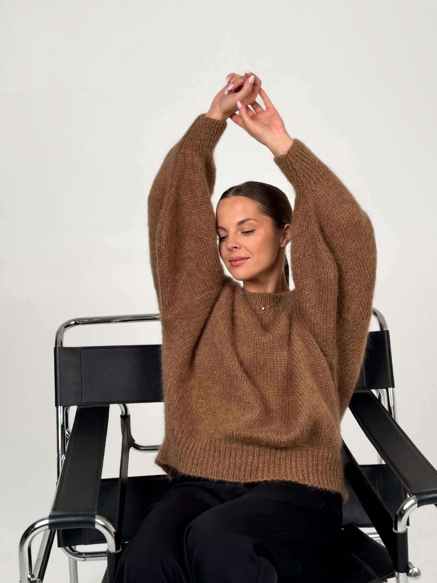 Pūkuotas, itin minkštas ir malonus liesti, mėgstančioms išskirtinumą, oversize stilių ir nevaržomą judėjimo laisvę. Modelis išsiskiria savo unikaliu dizainu - laisvas kirpimas bei pūstos rankovės ne tik prideda žavesio, bet ir užtikrina maksimalų jaukumą bei komfortą.